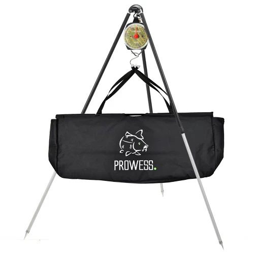 Trépied de pesée en aluminium, munit d’un crochet acier permettant de suspendre le peson et n’importe quel sac de pesée du marché.
